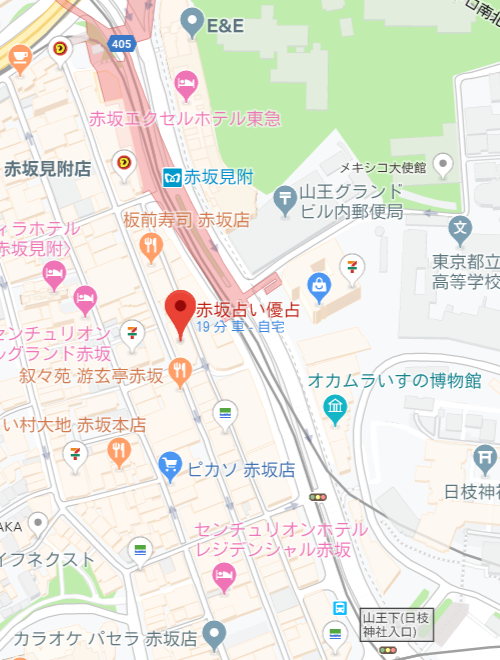 「赤坂占い優占」は地下鉄銀座線&丸の内線の赤坂見附駅から徒歩二分のところにあります。